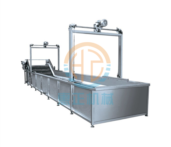 另外加裝毛刷,能有效清除物品中的毛發。高壓水流使物料呈翻滾狀態,去除產品表面農殘功效,洗菜機里漂浮物可以從溢流槽溢出,沉淀物從口排出,以達到清洗的目的。